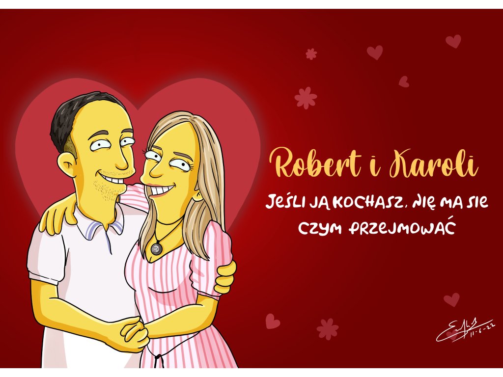 Styl Simpsonowie dla Zakochanych - ręcznie malowana karykatura ze zdjęcia
